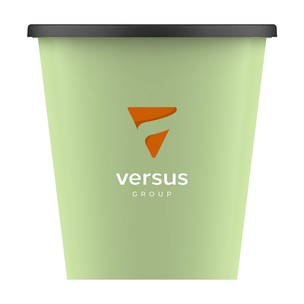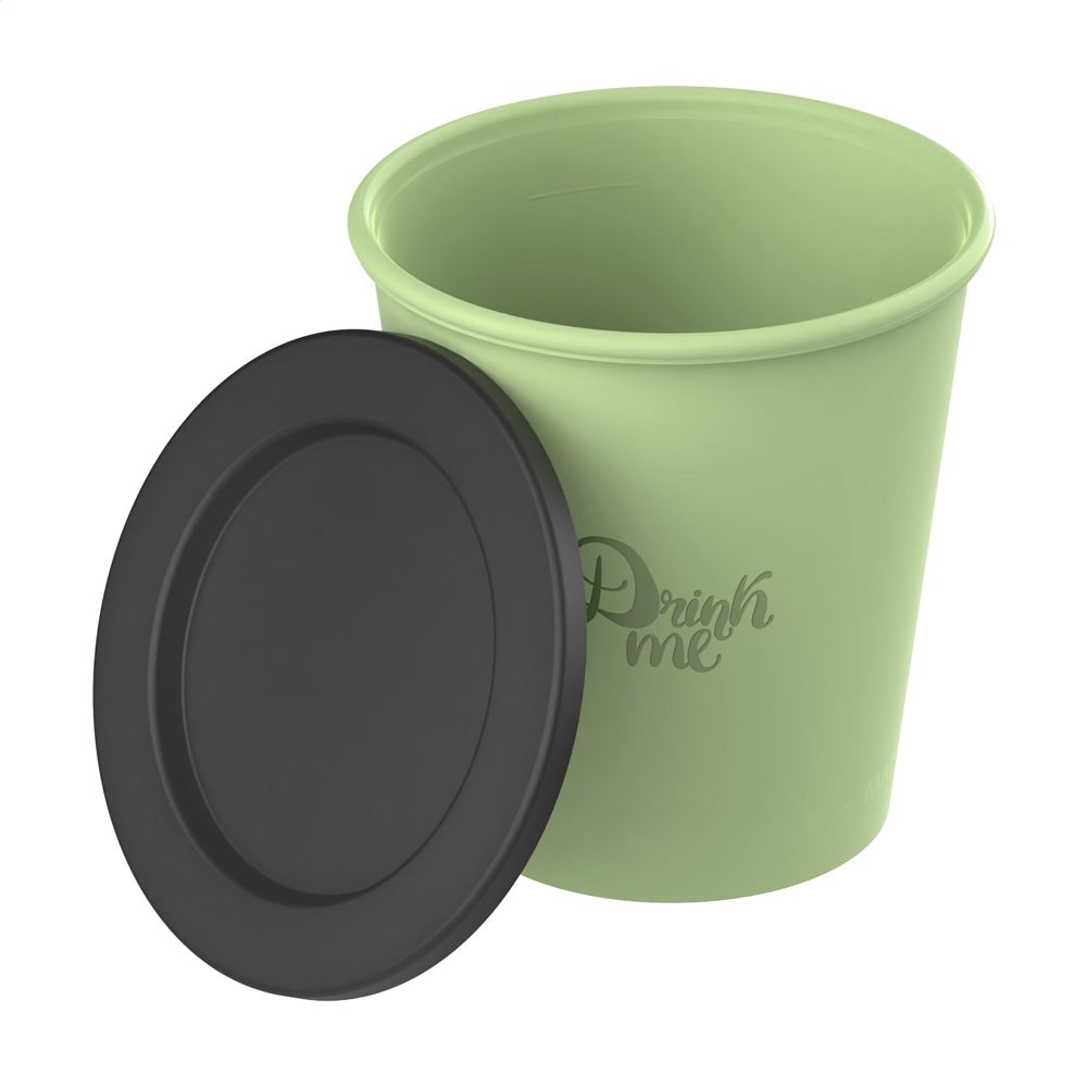 Herbruikbare drinkbeker van bio-based materiaal uit hernieuwbare bronnen. Deze beker is een goed alternatief voor de wegwerpkoffiebeker. Past onder nagenoeg elke koffiemachine. Met deksel om de koffie langer warm te houden en mee te nemen. Zowel de beker als het deksel zijn stapelbaar. 100% recyclebaar en BPA-vrij. Dit product is vaatwasserbestendig. Voor behoud van de opdruk wordt met de hand afwassen aanbevolen. Inhoud 200 ml. Made in Germany.