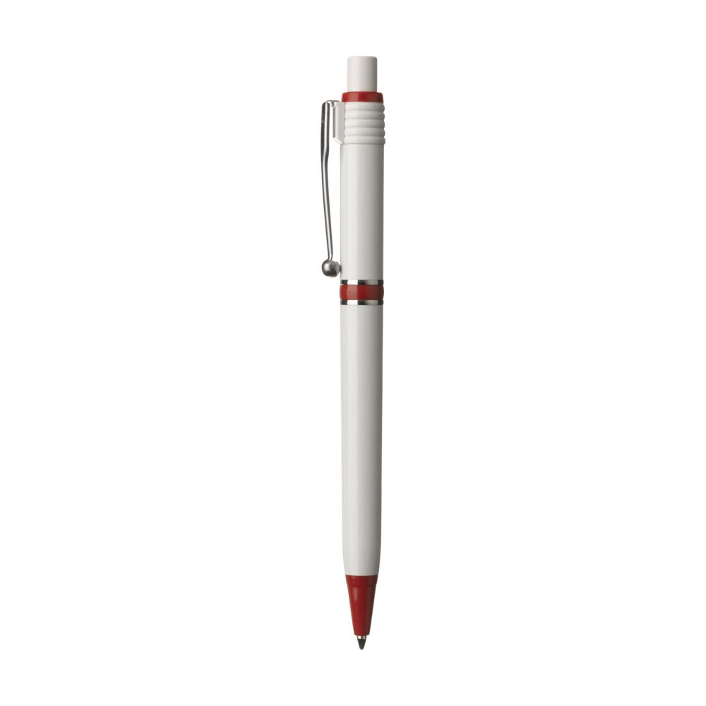Blauwschrijvende balpen van het merk Stilolinea. Met kleuraccenten, metalen clip en tussenringen. Made in Italy.