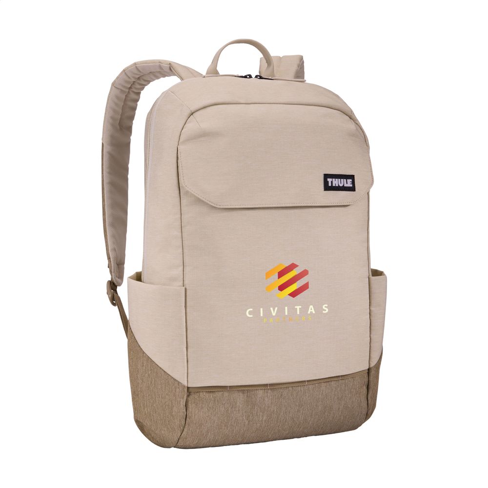 Stijlvolle polyester rugzak van het merk Thule. Het royale compartiment beschikt over een beschermvak voor een laptop tot 15,6 inch en een insteekvak voor een tablet tot 10,5 inch. Het voorvak met drukknoopsluiting geeft snel toegang tot een telefoon, sleutels en andere accessoires. Met zijvakken en verborgen ritsvak aan de achterzijde. De verstelbare schouderriemen en het rugpaneel zijn voorzien van foam staan garant voor uitmuntend draagcomfort. Volledig gevoerd. De ideale rugzak voor woon- werkverkeer. Inhoud ca. 20 liter.