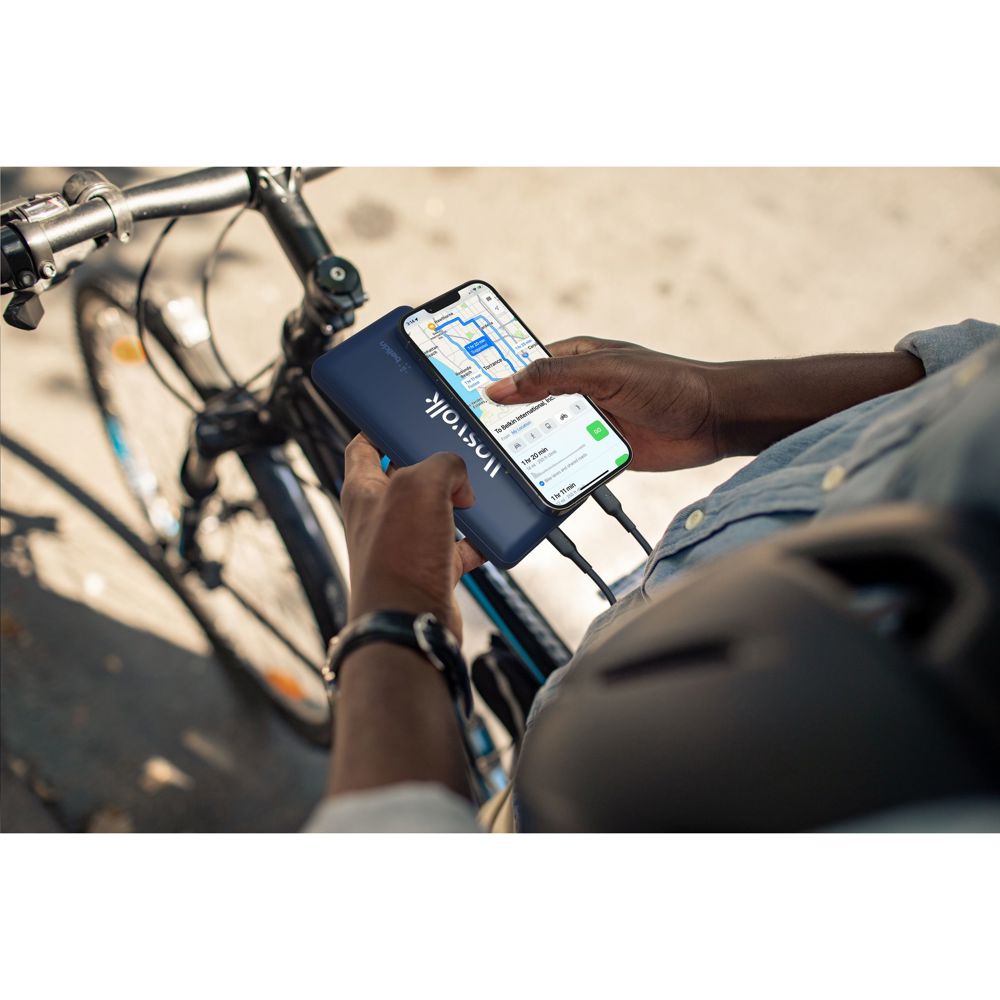 Powerbank 20.000 mAh van het merk Belkin. Met een behuizing van gerecycled kunststof. Laad razendsnel een smartphone en andere apparaten op met een vermogen tot 15W via twee USB-A-poorten en één USB-C-poort. Deze powerbank biedt tot 78 uur extra batterijduur. Genoeg voor het kijken van films, het voeren van FaceTime-gesprekken en het gebruik van navigatie-apps. Met LED-indicatielampje. De powerbank voldoet aan de luchtvaartveiligheidsnormen, dus je mag hem in je handbagage meenemen. Inclusief USB-A/USB-C-kabel en gebruiksaanwijzing. 100% plasticvrije verpakking. Gemaakt van plastic dat na gebruik is gerecycled. Per stuk verpakt.