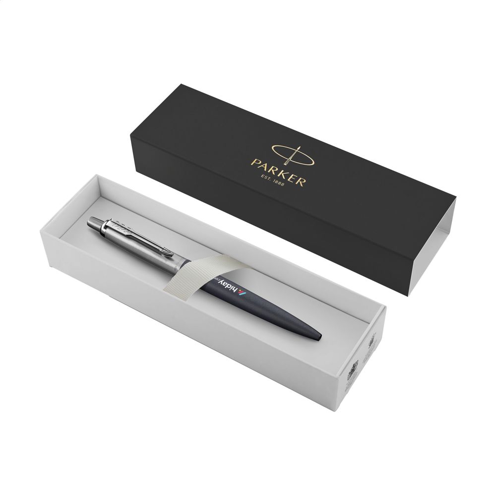 Blauwschrijvende balpen van het merk Parker. Met kunststof behuizing. Het bovenstuk, drukknop en verende pijlclip zijn van RVS. Deze XL-uitvoering heeft alle kenmerken van de iconische Jotter, maar is groter uitgevoerd. De lengte en de diameter zijn met 7% vergroot, voor een fijne schrijfervaring voor iedereen die de voorkeur geeft aan een grotere balpen. De pen is uitgerust met een Parker-vulling voor een soepele schrijfervaring. Een stijlvol en functioneel schrijfinstrument, perfect voor dagelijks gebruik. Geleverd in een Parker giftbox. Made in Europe.