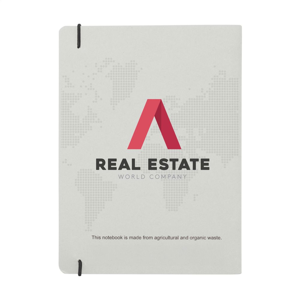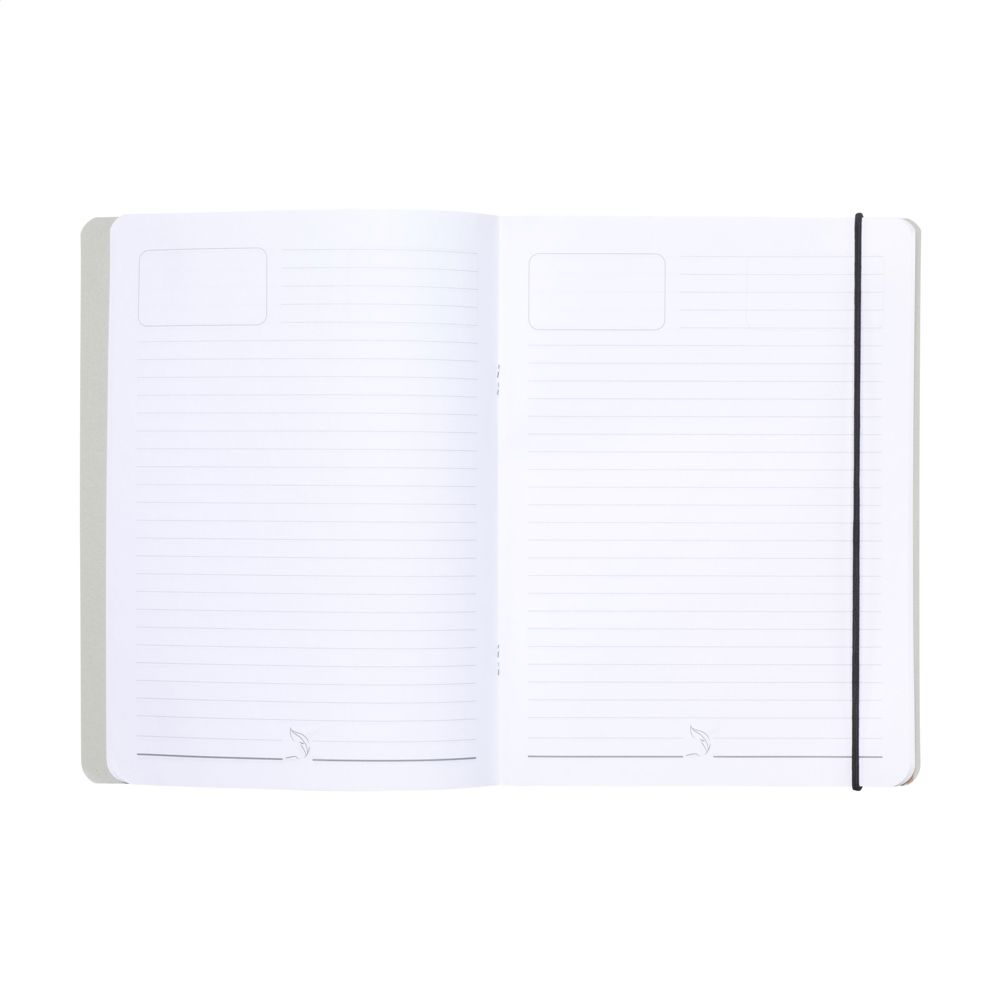 Notitieboek in A5-formaat. Met ca. 32 vel/64 pagina's gelinieerd papier (80 g/m²). De softcover bestaat voor 15% uit agrarisch en organisch afval van bijvoorbeeld tomaten, pepers, planten en uien. Dit afval wordt vermengd met gerecycled papier, afkomstig uit Europa. Een handig notitieboekje voor het maken van aantekeningen en het noteren van ideeën.