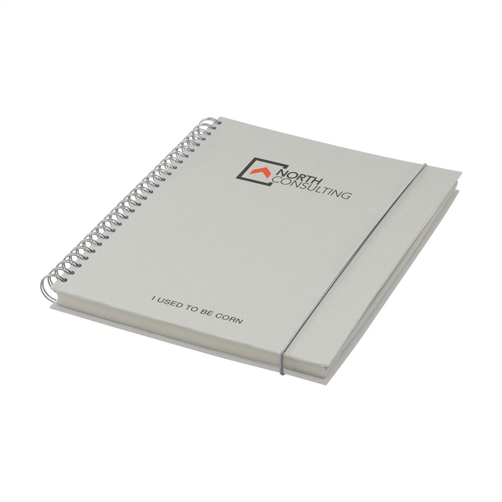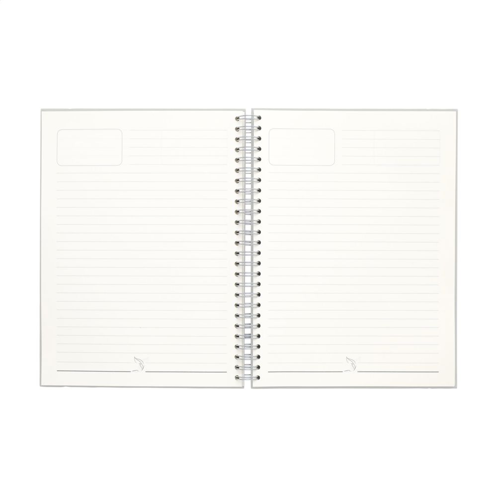 Notitieboek in A5-formaat. Met ca. 100 vel/200 pagina's gelinieerd papier (80 g/m²), een stevige wire-o-binding en sluitelastiek. De hardcover bestaat voor 15% uit agrarisch en organisch afval van bijvoorbeeld tomaten, pepers, planten en uien. Dit afval wordt vermengd met gerecycled papier, afkomstig uit Europa. Een handig notitieboekje voor het maken van aantekeningen en het noteren van ideeën.