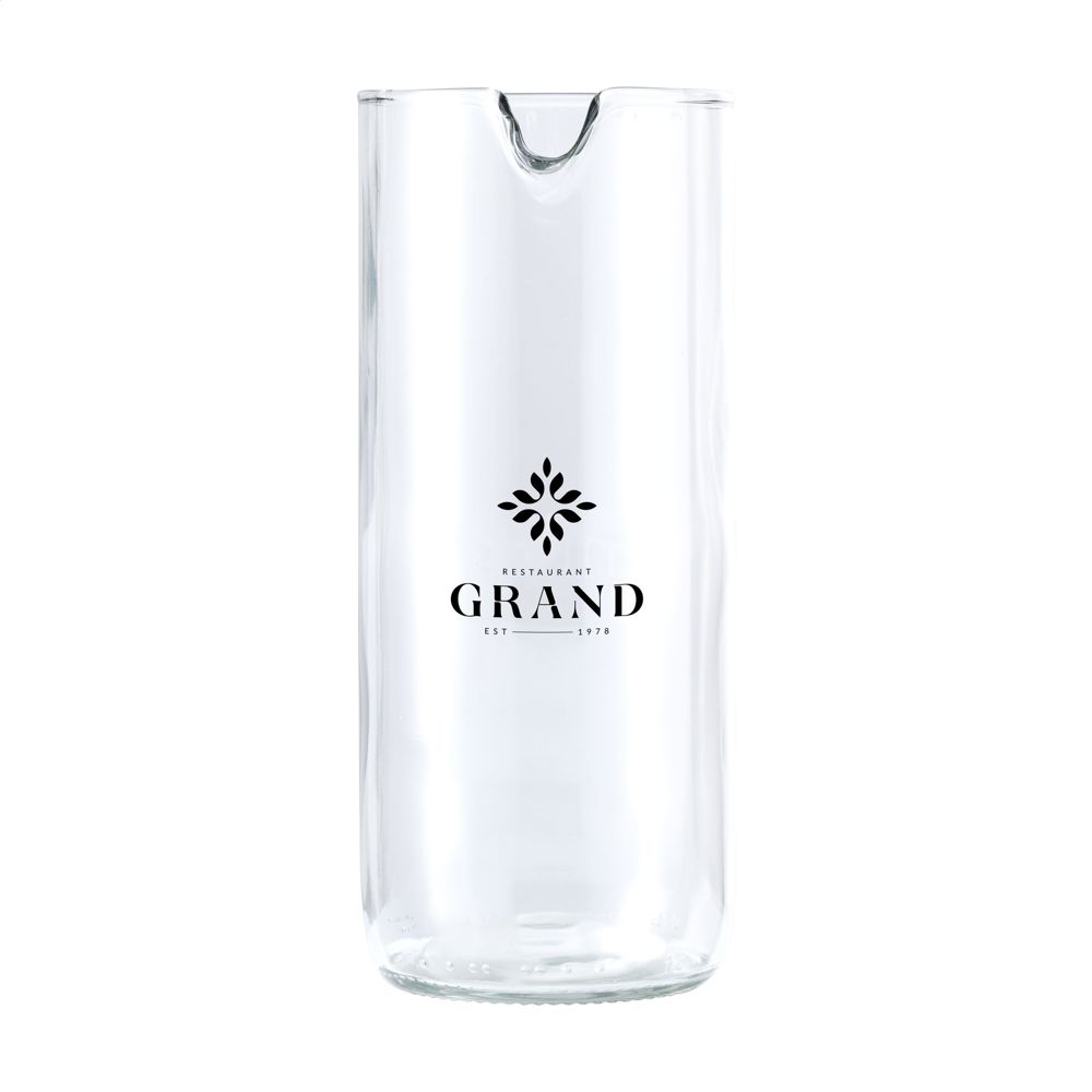 Rebottled® design karaf gemaakt van een geupcyclede wijnfles. Een unieke, herbruikbare karaf waarin je direct de oorspronkelijke wijnfles herkent. Het glas van de fles heeft een gladde afwerking. Deze karaf is een absolute eyecatcher van hoge kwaliteit. Vaatwasserbestendig tot 60C°. Voor behoud van de opdruk wordt met de hand afwassen aanbevolen. Per stuk geleverd in een originele geschenkverpakking van gerecycled karton. Dutch design. Made in Holland. Inhoud ca. 600 ml. Bedrukking alleen mogelijk in de kleur zwart of wit. Rebottled® upcyclet lege wijnflessen tot 100% circulaire design items. Per stuk verpakt.