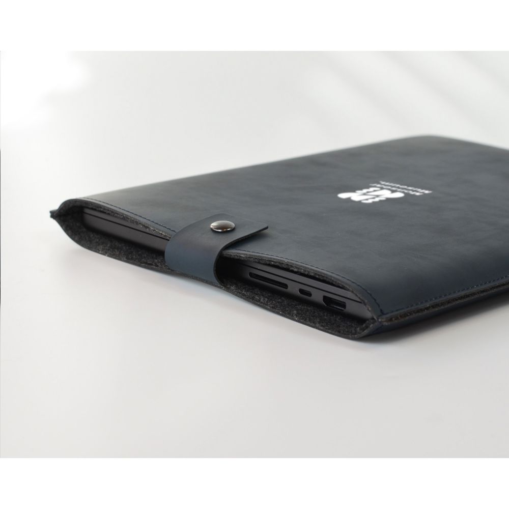 Een stijlvolle 16 inch laptop sleeve gemaakt van gerecycled, Italiaans leerafval en natuurlijke binders. Een product van het merk MADE out of. Geschikt voor het opbergen en veilig vervoeren van een laptop tot 146inch. Het gerecycled leer is zeer stevig, heeft een mooie matte uitstraling en ruikt naar leer. De gekleurde toplaag is gemaakt van een zeer dunne PU-coating op 100% waterbasis. Ter bescherming van de laptop is de hoes voorzien van een drukknoopsluiting en gevoerd met gerecycled wolvilt vervaardigd uit 50% gerecycled materiaal, 30% wol en 20% PE. Handgemaakt. Dutch design. Made in Holland.