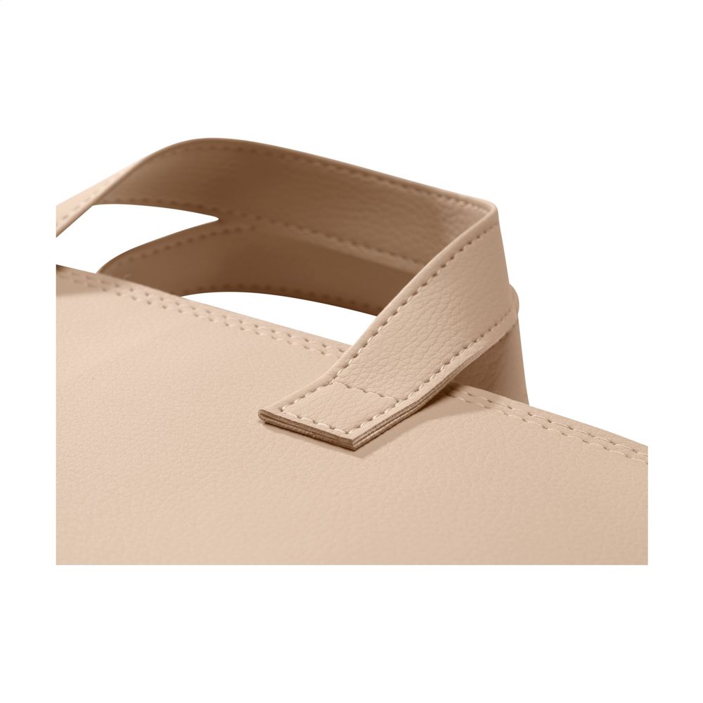 Een luxe, design 15/16 inch laptoptas van het merk MADE out of, is gemaakt van vegan leer. Het vegan leer is een plantaardig alternatief voor leer en gemaakt van gerecycled appelpulp. Het heeft de look and feel van echt leer. Het afval van de appels wordt bewerkt en vervolgens verwerkt met een mix van PU, polyester en katoen. De laptoptas heeft een YKK rits, 2 handgrepen en een voorvak. Het royale hoofdvak is keurig afgewerkt met een 100% gerecyclede PET-voering, en biedt genoeg ruimte voor bijvoorbeeld een oplader, documenten en een notitieblok. Geschikt voor het opbergen en veilig vervoeren van een laptop tot 16 inch. Zo bewaar je alles op één plek, ook wanneer je onderweg bent. Dit topproduct is handgemaakt. Dutch design. Made in Holland.