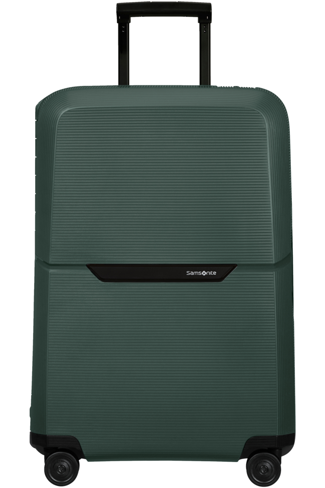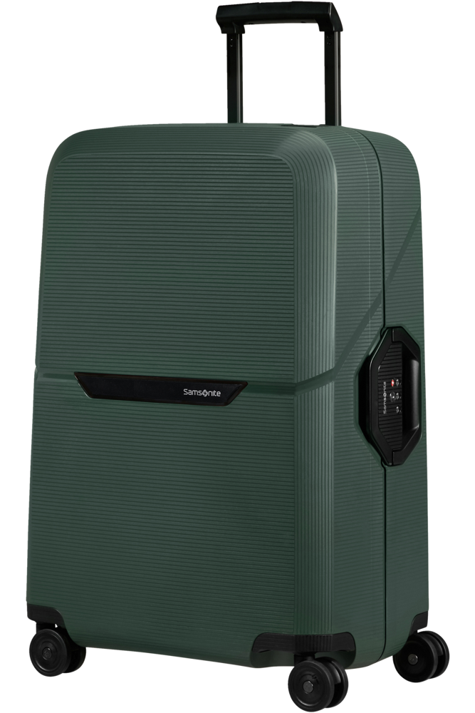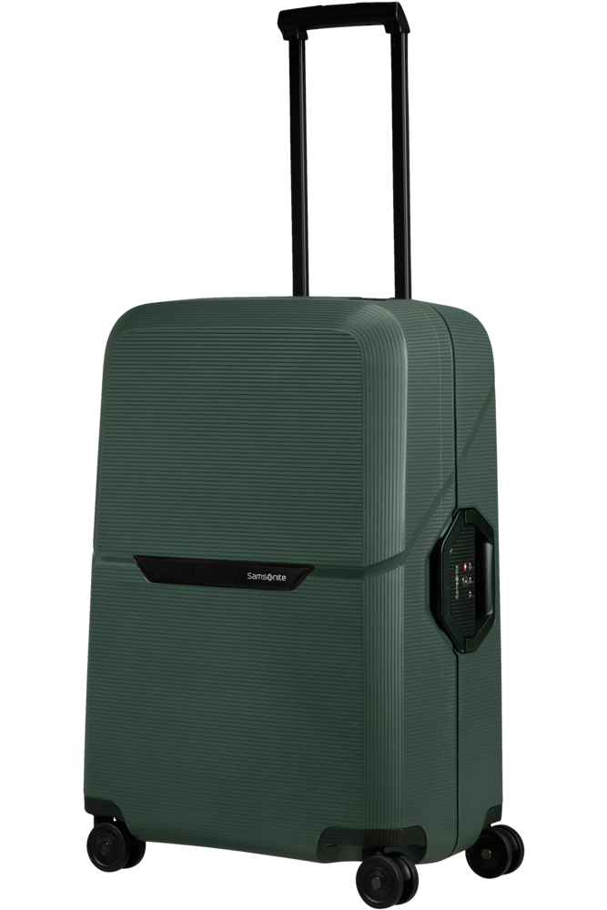 De Spinner 69 is de middelgrote ruimbagagekoffer uit de collectie en de perfecte metgezel voor een vakantie van 1 tot 2 weken. Het ruime interieur is opgedeeld in 2 compartimenten, die beide zijn voorzien van gekruiste inpakriemen en een tussenschot, waarvan 1 is voorzien van een ritsvak. Het interieur is gemaakt van 100% gerecyclede PET-flessen. De buitenkant is gemaakt van duurzaam polypropyleen gemaakt van gerecyclede yoghurtpotjes en is voorzien van een superveilige driepuntssluiting en een van de nieuwste, verzonken TSA-sloten. Optimaal comfort is gegarandeerd dankzij de 4 soepel rollende dubbele wielen, een dubbele trekstang en handvatten aan de zij- en bovenkant. Het stijlvolle kleurenpalet van Magnum Eco is geïnspireerd op de natuur.