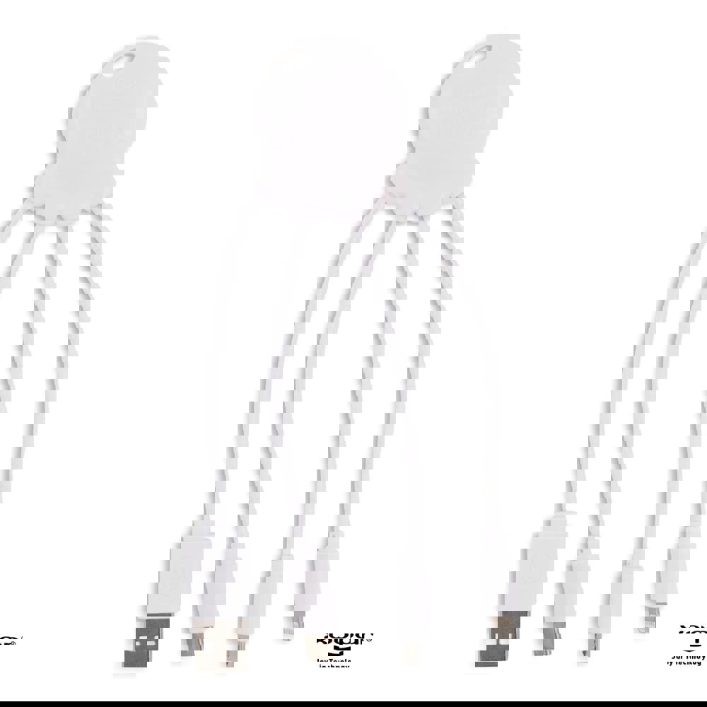 De Eco Octopus oplaadkabel is gemaakt van RPET (kabels) en gerecycled plastic (behuizing). Met één USB-ingang en drie verschillende connectoren kun je je apparaten op een milieuvriendelijke manier opladen. Op je bureau, in de auto, in je tas of op vakantie; deze multi-oplaadkabel komt altijd van pas! Het totale gerecyclede materiaal is 61% op basis van het gewicht van het artikel. De kabel is verpakt in een duurzame FSC-gecertificeerde papieren envelop.