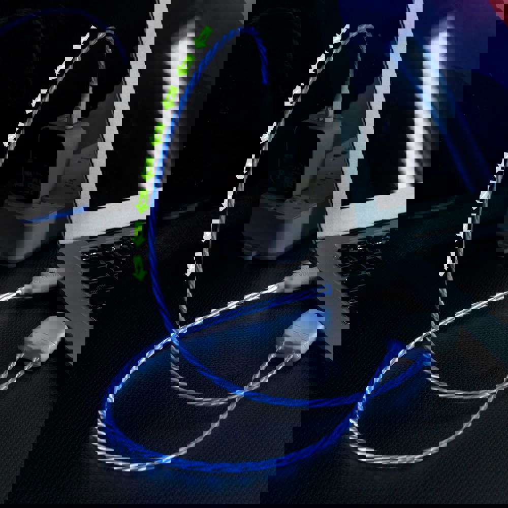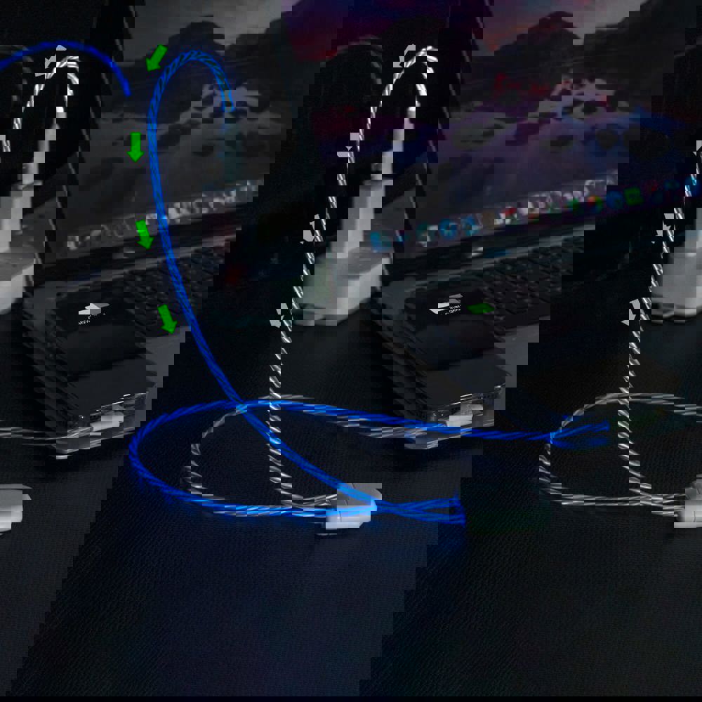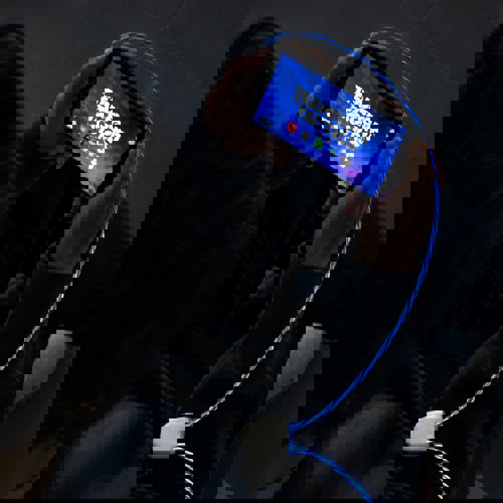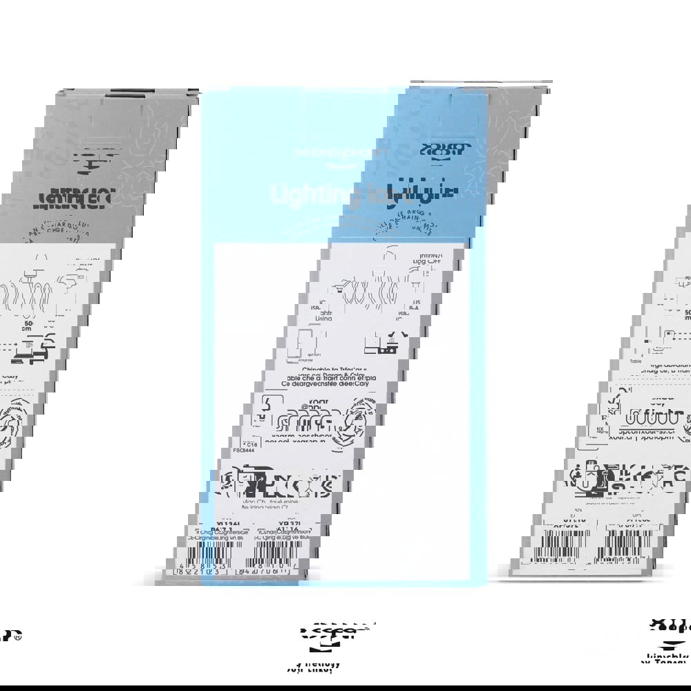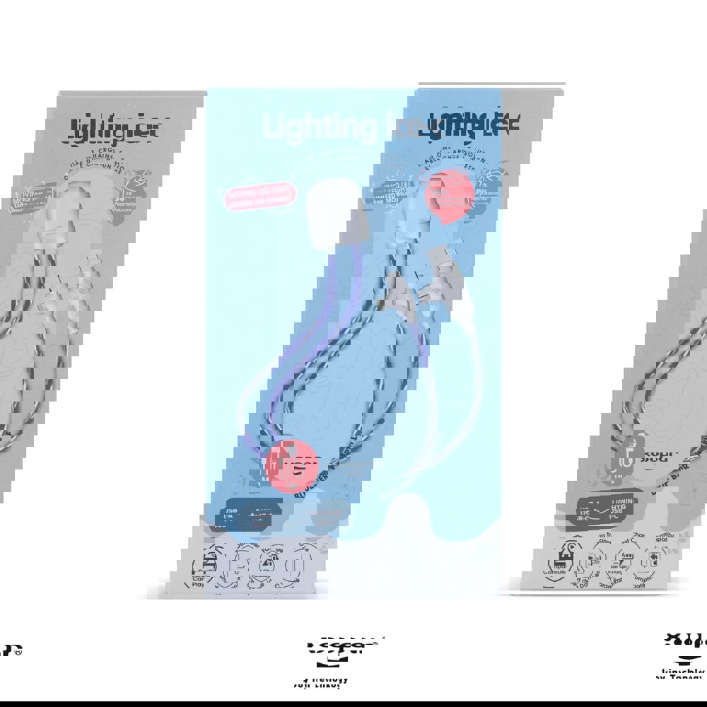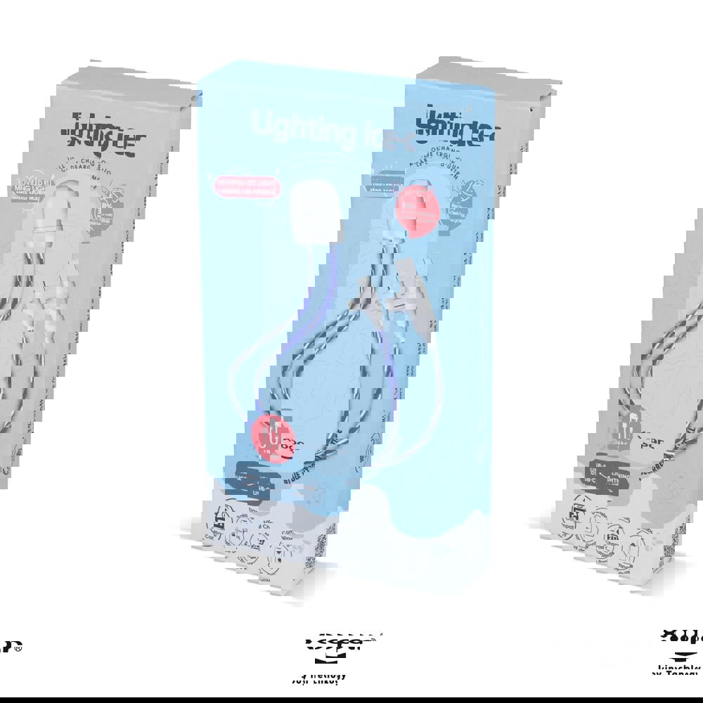 De Xoopar Light up oplaadkabel, 2x 50cm lang, biedt naadloos laden en CarPlay-functionaliteit. Dubbele in-/uitgang, tot 27W snel laden. LED-snelheid geeft laadsnelheid aan. Van gerecycled plastic.