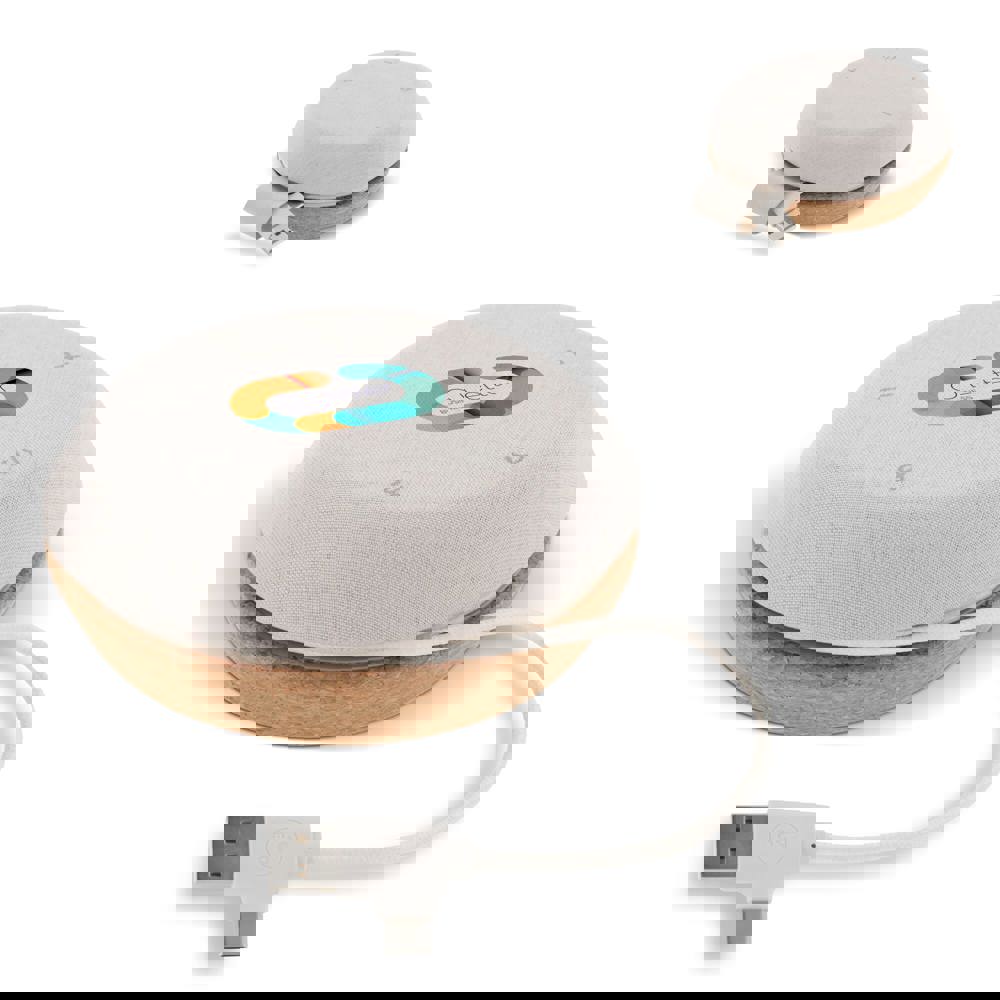 Compacte draagbare speaker. Start overal een conferentiegesprek. De Meetair is ook zeer geschikt voor luisteren naar muziek. De verborgen kabel heeft een ingangsadapter voor USB en USB-C. De speaker heeft twee microfoons, dus kan hij overal neergezet worden. Bovendien worden eventuele omgevingsgeluiden onderdrukt.