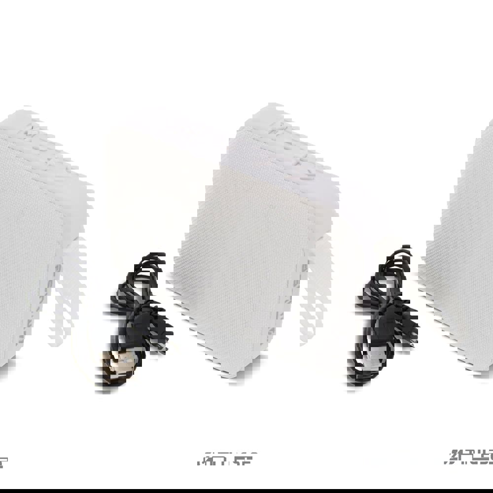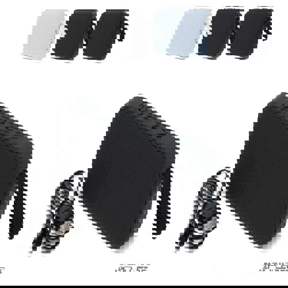 Deze compacte draagbare Bluetooth speaker biedt ondanks het kleine formaat een verrassend goed geluid. Daarnaast geeft de stoffen bekleding de speaker een hippe uitstraling. De ideale speaker dus om mee te nemen op reis. De ingebouwde batterij laadt snel op en garandeert u een lange luistertijd. Op te laden met de meegeleverde USB-kabel.
