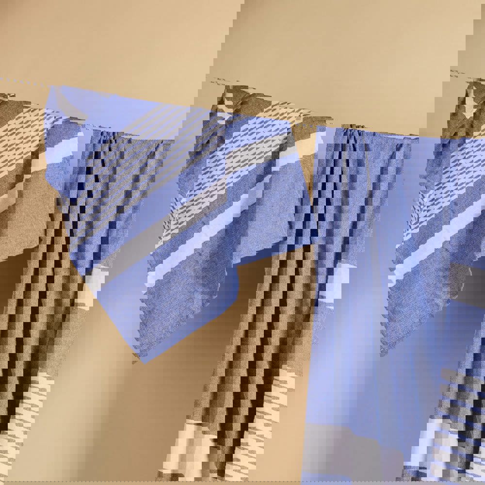 Deze set kleine Ella hamamdoeken van Sagaform is gemaakt van dun, geweven gerecycled katoen (70%) en polyester (30%). Het karakteristieke patroon van de strepen is typisch voor Sagaform. Droogt snel en is gemakkelijk op te hangen. Zo te gebruiken als keukenhanddoek, maar net zo makkelijk opgerold mee te nemen naar het strand, het zwembad of in je trainingstas. Verpakt in een mooie kartonnen sleeve..