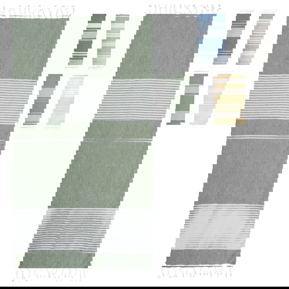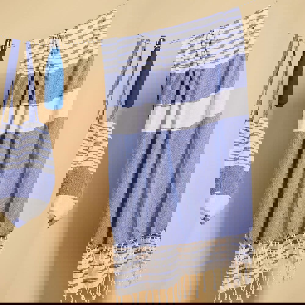 Deze mooie grote Ella hamamdoek van Sagaform is gemaakt van dun, geweven gerecycled katoen (70%) en polyester (30%). Het karakteristieke patroon van de strepen is typisch voor Sagaform. Droogt snel en is gemakkelijk op te hangen. Ook te gebruiken als picknick kleed, tafellaken, maar net zo makkelijk opgerold mee te nemen naar het strand, het zwembad of in je trainingstas. Verpakt in een mooie kartonnen sleeve..