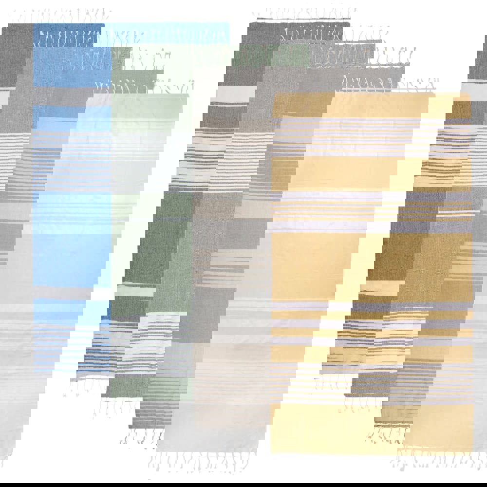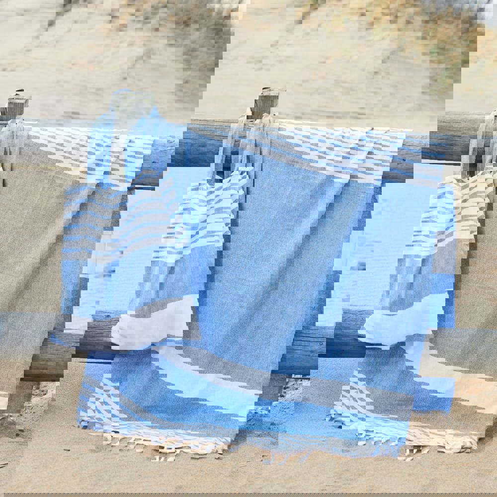 Ella Hamamdoek. Het doek is verfraaid met de klassieke en karakteristieke strepen van Sagaform en met omzoomde uiteinden. Het mooie materiaal en de verschillende strepen maken deze collectie een interieur stylings product, gebruik het als picknick- of tafelkleed, of als handdoek in de badkamer. Deze doeken drogen zeer snel.