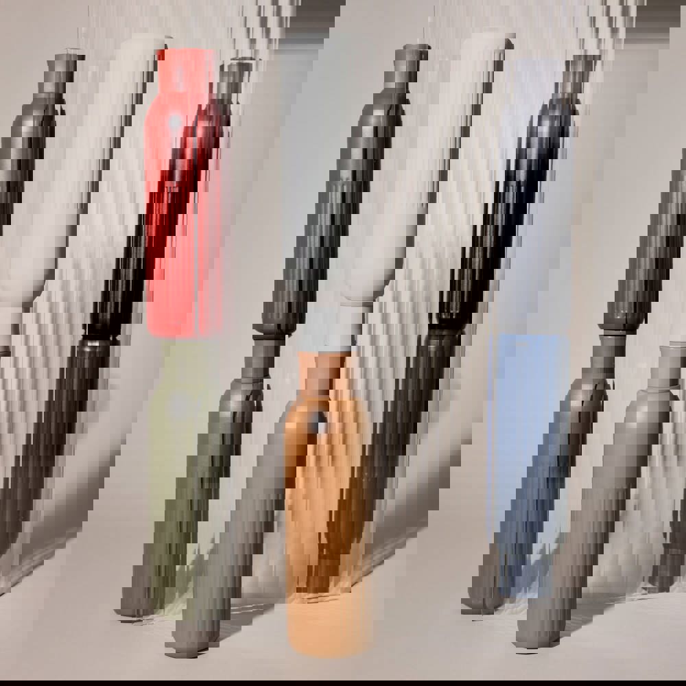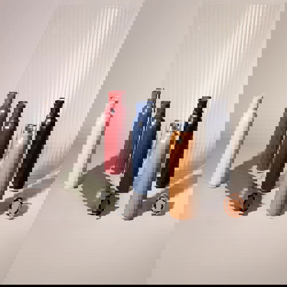De Sagaform Tekla Push-fles belichaamt Scandinavisch design en dagelijkse functionaliteit. Gemaakt van gerecycled staal met vacuümisolatie en kopercoating: houdt dranken 12 uur warm of 24 uur koud zonder condensatie. De slimme drukdop geeft een sportieve look en is lekvrij. Gepoedercoat, Vaatwasserbestendig en klaar voor het leven onderweg.