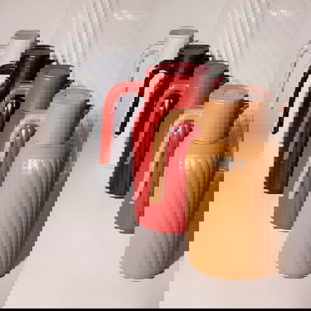 De Sagaform Trine is een stijlvolle thermoskan van 1.5 liter, perfect voor het familieontbijt en zakelijke meetings. Het tijdloze design combineert zachte lijnen, elegante ribbels en een matte, luxe afwerking. Dankzij vacuümisolatie en koperlaag blijft je drankje 12 uur warm of 24 uur koud. Voorzien van een handige drukdop en afneembare schroefdop. Vaatwasserbestendig.