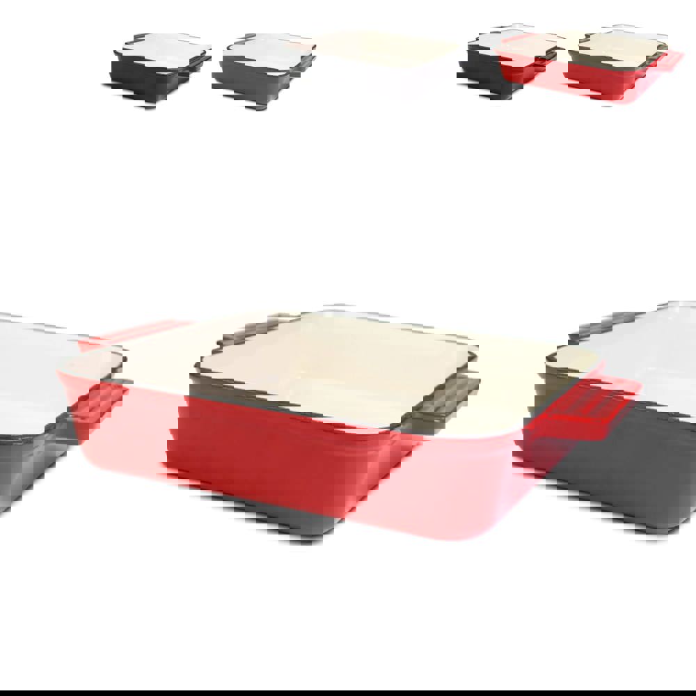 Een iets grotere geëmailleerde gietijzeren pan in een ovale vorm. Een stevige pan die perfect is voor zowel slow cooking als alledaags eten.