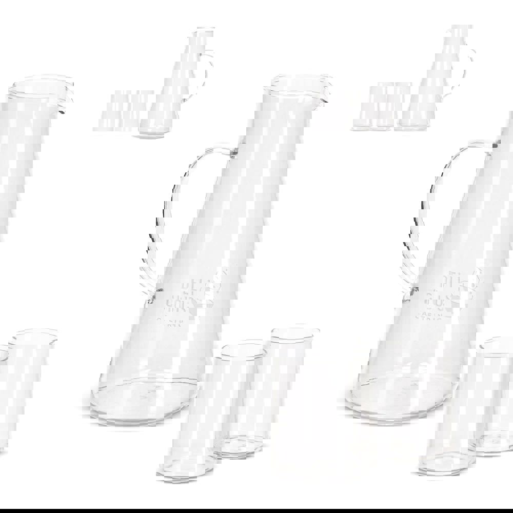 De InSideOut karafset Elin bestaat uit 2 glazen en een karaf met handvat. De set is gemaakt van Boriumsilicaat, een hittebestendig en zeer sterk glas. De uitvoering is eenvoudig maar stijlvol, zonder tierelantijntjes of extra randjes en daarom perfect te combineren met ander tafelgerei of servies. De kan heeft een inhoud van 1.2L en de glazen iester 270 ml en zijn magnetron veilig. Zowel de kan als de glazen kunnen worden voorzien van een gravering .