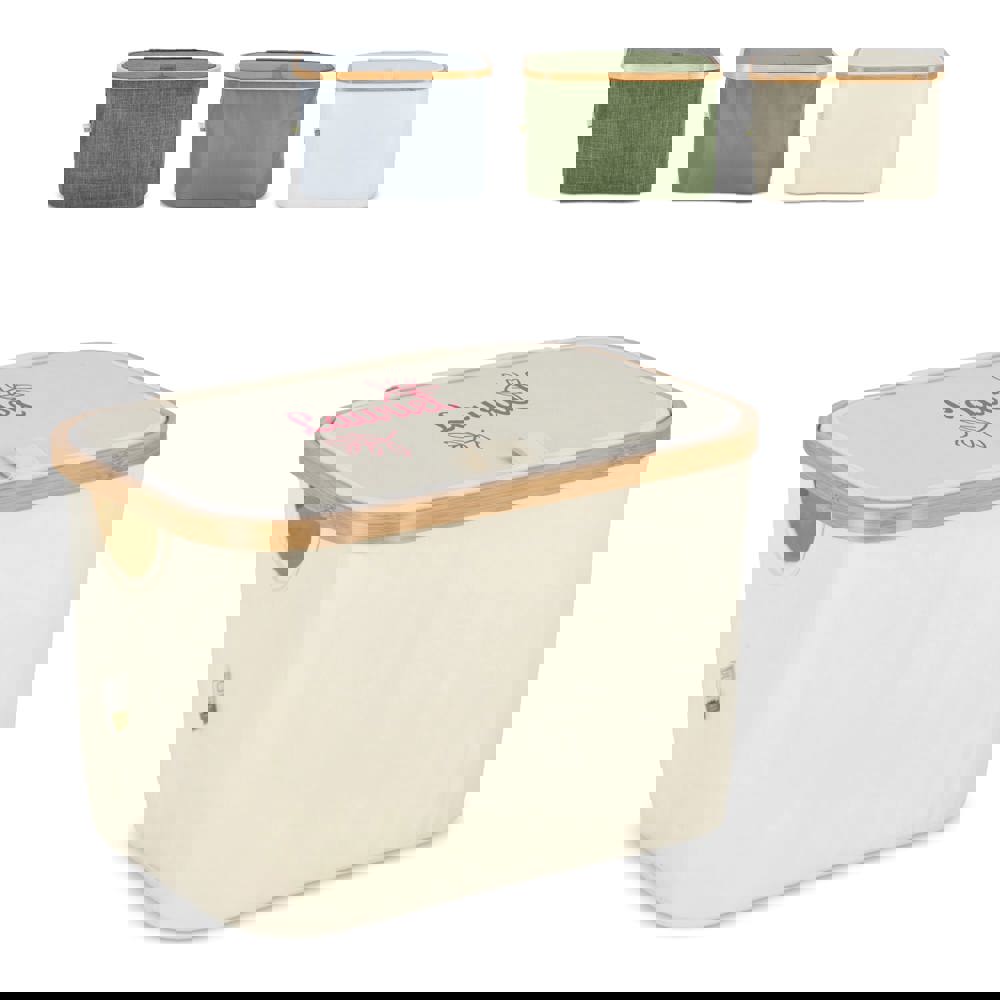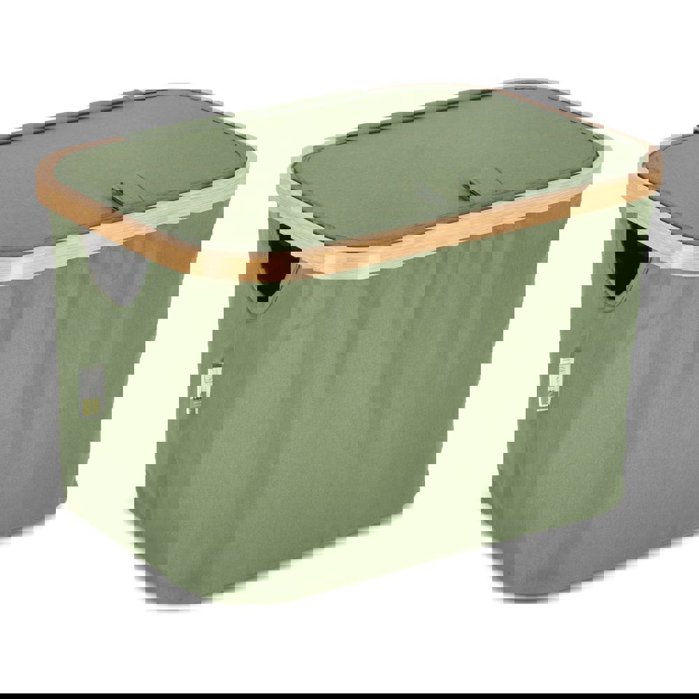 Deze compacte vouwmand Sogne van InSideOut is een stijlvolle en duurzame opbergoplossing, gemaakt van gerecyclede materialen en bamboe. Het moderne design past perfect in elke inrichting en zorgt ervoor dat je elke ruimte netjes en geordend achterlaat. De mand is voorzien van een deksel en is zowel opvouwbaar als stapelbaar, waardoor hij niet alleen functioneel, maar ook ruimtebesparend is. Elke hoek van de mand is verstevigd met textielomwikkelde steunen, die eenvoudig onder het bamboe frame bevestigd kunnen worden met klittenband. Dankzij dit slimme systeem is de mand snel in- en uit te vouwen, waardoor hij gemakkelijk op te bergen is en ideaal voor dagelijks gebruik. Kortom, de Sogne vouwmand combineert duurzaamheid, stijl en praktisch gemak in één.