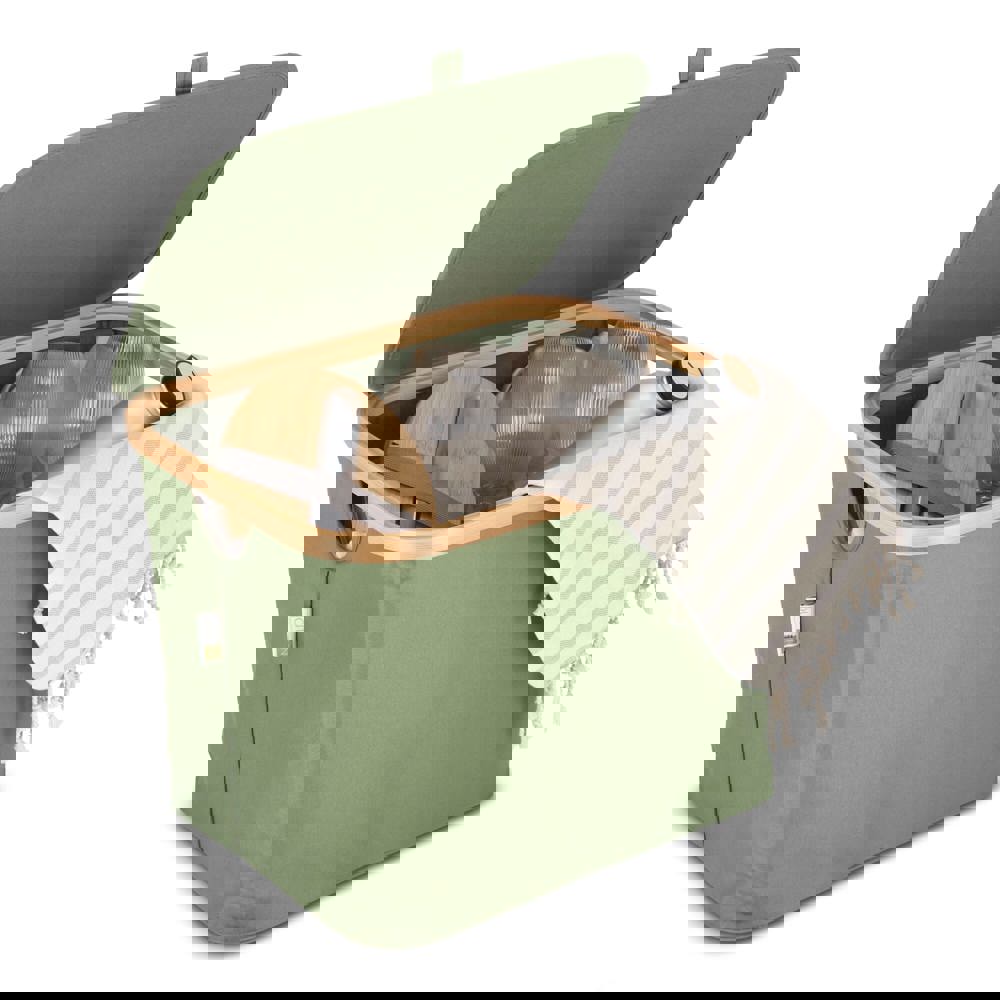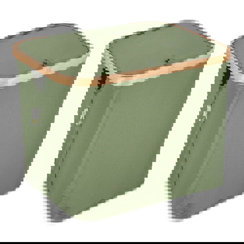 Deze vouwmand Sogne van InSideOut is een stijlvolle en duurzame opbergoplossing, gemaakt van gerecyclede materialen en bamboe. Het moderne design past perfect in elke inrichting en zorgt ervoor dat je elke ruimte netjes en geordend achterlaat. De mand is voorzien van een deksel en is zowel opvouwbaar als stapelbaar, waardoor hij niet alleen functioneel, maar ook ruimtebesparend is. Elke hoek van de mand is verstevigd met textielomwikkelde steunen, die eenvoudig onder het bamboe frame bevestigd kunnen worden met klittenband. Dankzij dit slimme systeem is de mand snel in- en uit te vouwen, waardoor hij gemakkelijk op te bergen is en ideaal voor dagelijks gebruik. Kortom, de Sogne vouwmand combineert duurzaamheid, stijl en praktisch gemak in één.
