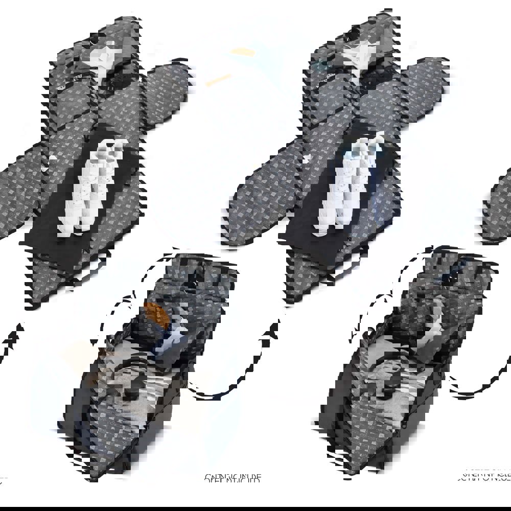 De Carry Smart van InSideOut is een slimme reistas gemaakt van luxe materialen, stijlvol afgewerkt en verrassend functioneel. Dankzij de ingebouwde kledingtas neem je een blazer of jurk eenvoudig kreukvrij mee. Met veel opbergruimte, schouderriem en losse schoenenzak is deze tas ideaal voor zakelijke of vrije tijdreizen. Reis slim, reis in stijl.