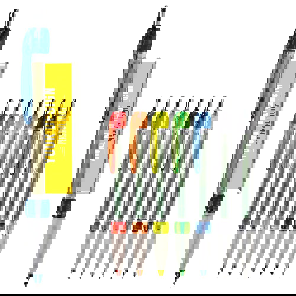 Transparante balpen met rubberen grip. Met full-colour banner bedrukking aan twee zijden. Blauwschrijvende X20 vulling. Bedrukking op de houder of clip mogelijk.