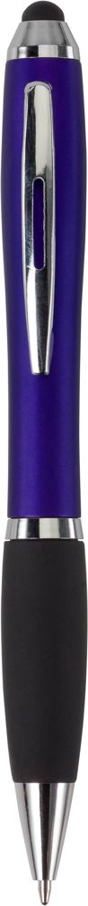 Witte balpen met metalen clip en metal look drukknop, ring en punt. De pen bevat een blauwschrijvende Jumbo vulling.