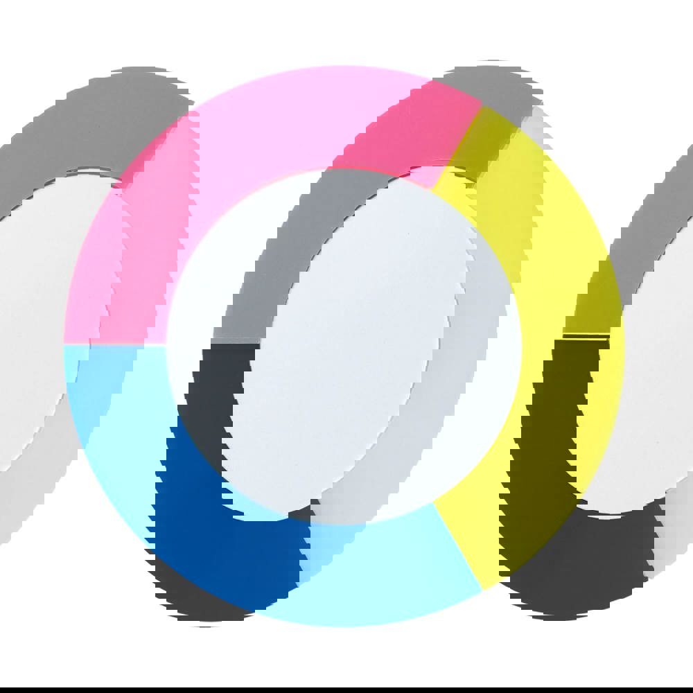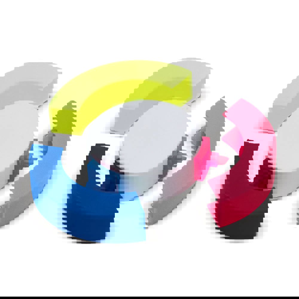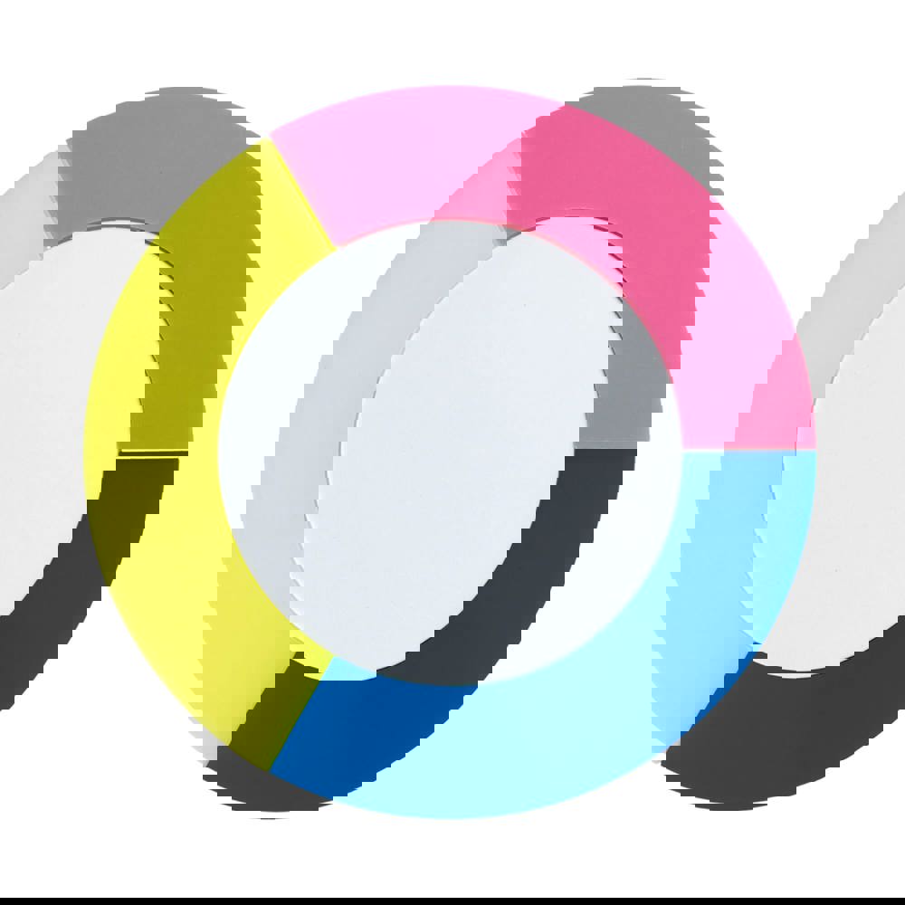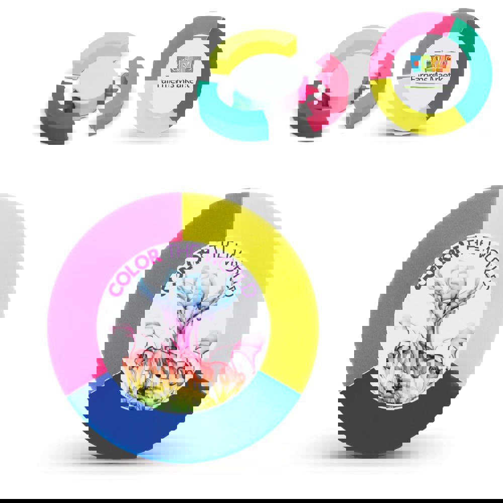 Toppoint design ronde tekstmarker met drie schrijfkleuren. Groot drukoppervlak op het witte gedeelte. Bedrukking ook mogelijk via digitale print of met een doming.