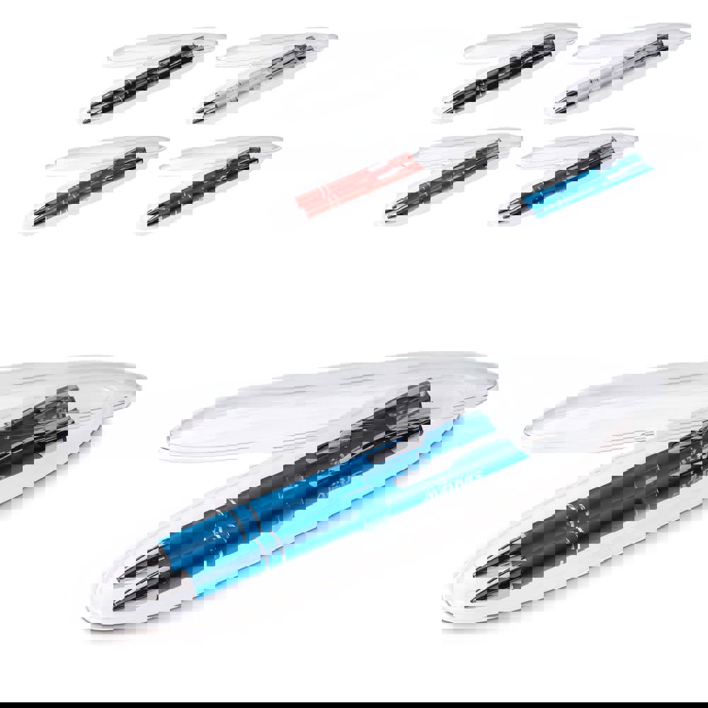 Schrijfset met Alicante balpen (LT87915) en vulpotlood (LT89216) in ovaal transparante geschenkverpakking. Bedrukking op het doosje mogelijk. Met blauwschrijvende vulling.