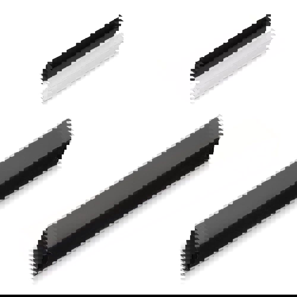 Zwarte geschenkverpakking voor één pen met transparante sleeve.