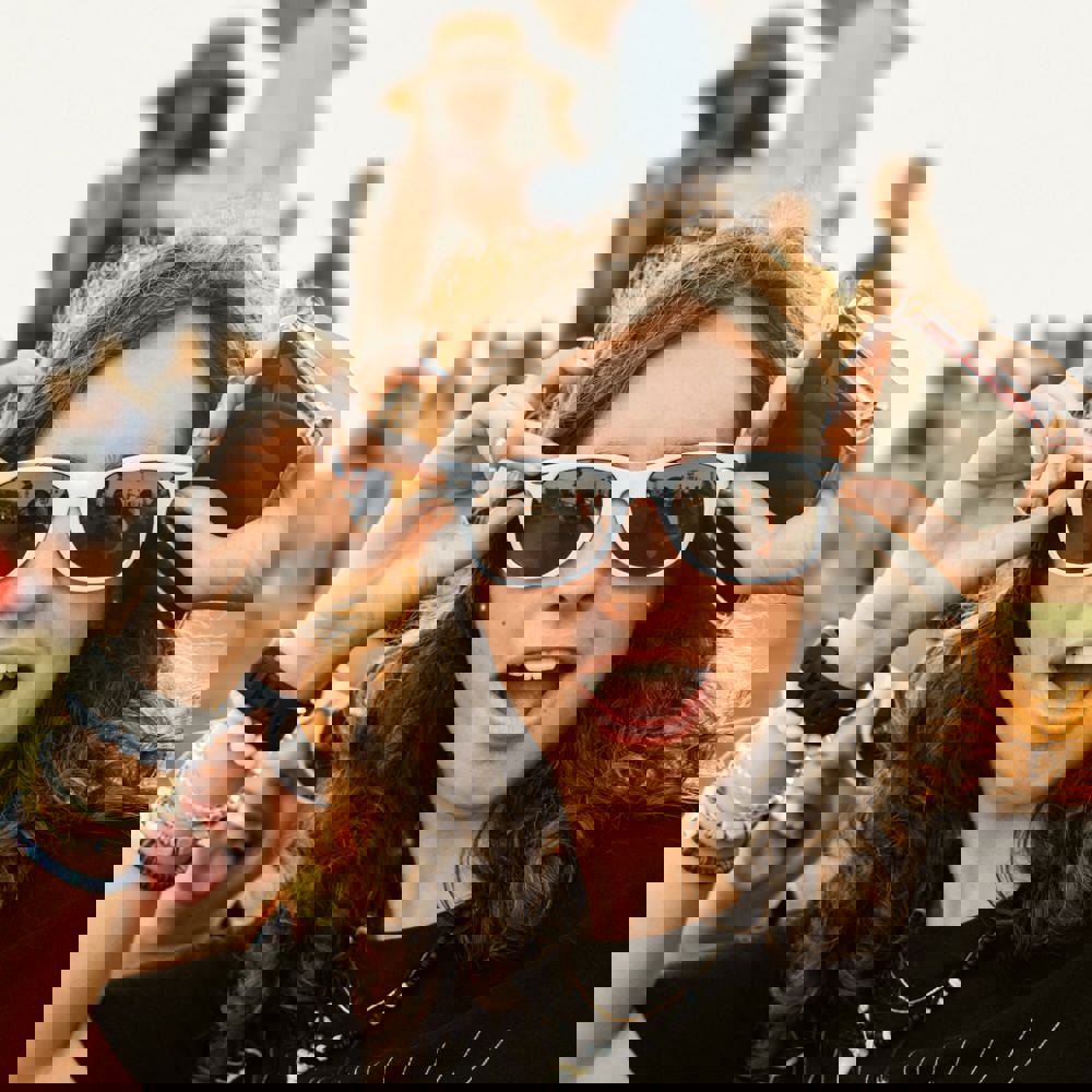 Zonnebril met een eigentijdse look voor een modieuze uitstraling. De donkere glazen zijn voorzien van een UV400 filter.