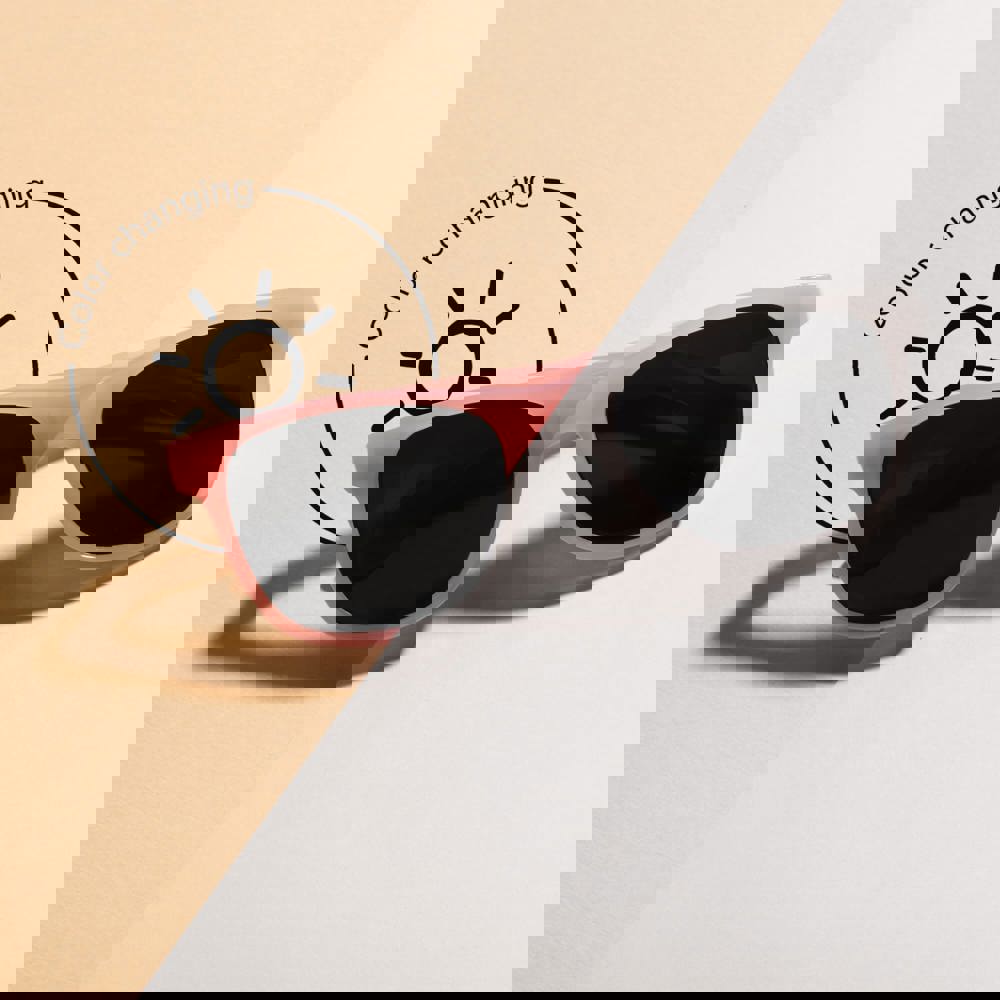 Deze unieke witte zonnebril verandert van kleur wanneer het in contact komt met zonlicht. Hierdoor heb je naast een stijlvolle bril ook nog eens het verassende effect van de kleurverandering.