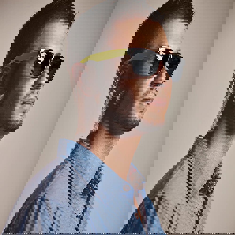 Vrolijk en modieuze zonnebril met gekleurde pootjes en UV400 filter.