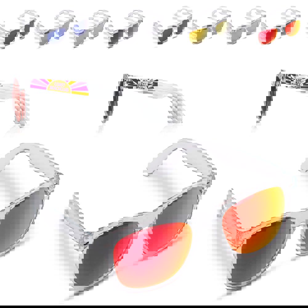 Zonnebril met transparant frame. De lens heeft een UV400 filter en biedt de ogen bescherming op een zonnige dag.