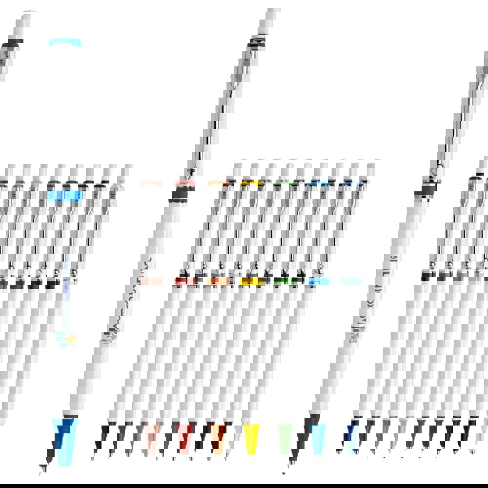 Een van de meest populaire modellen van Stilolinea is de hardcolour Raja balpen met witte barrel en gekleurde tip en ring. De pen bevat een Jumbo vulling met blauw schrijvende inkt. Het heeft een drukmechaniek en is gemaakt van metaal en ABS kunststof. Geproduceerd in Europa. Kleur combinaties voor deze pen zijn mogelijk vanaf 5.000 stuks.