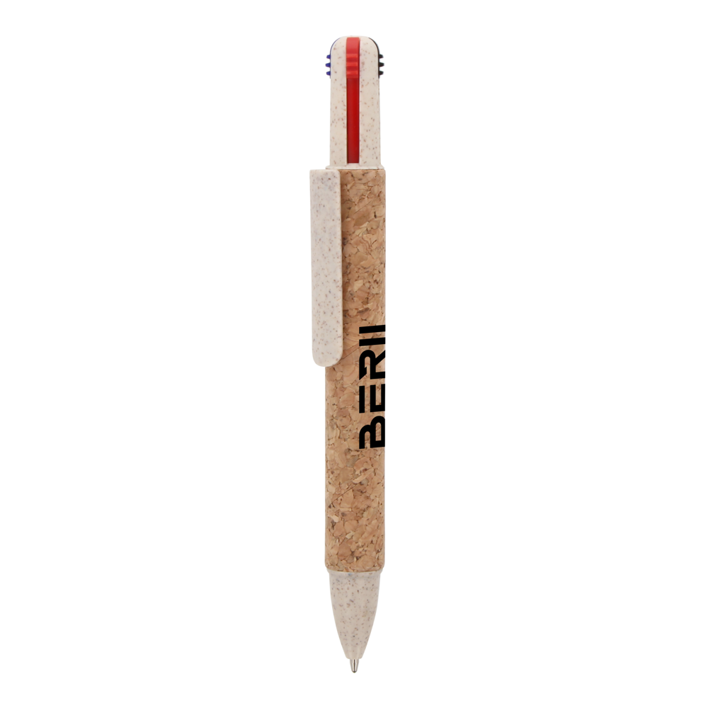 Maak kennis met onze veelzijdige kurkpen met vier verschillende schrijfkleuren. Duurzaam en kleurrijk schrijven in één!