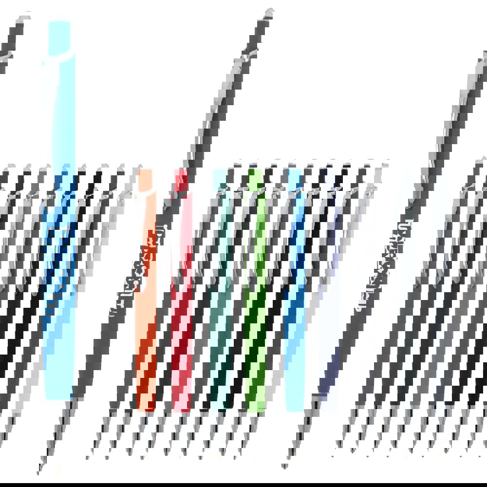 Aluminium balpen met elegante soft-touch afwerking. Met solide metalen clip. Schrijfkleur: blauw.