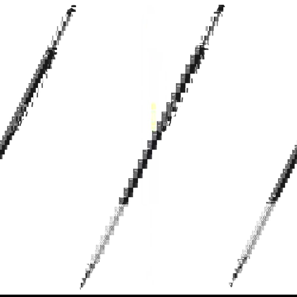 Multifunctionele balpen met stylusfunctie inclusief een waterpas, schroevendraaier en lineaal. Blauwschrijvend.
