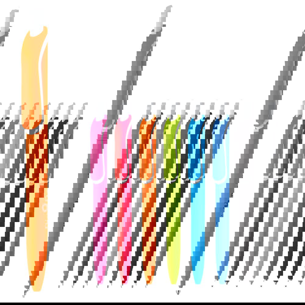 Deze Toppoint design balpen is zeer elegant dankzij de soft-touch afwerking. Het gerecyclede materiaal maakt deze pen tot een duurzaam alternatief voor de gewone pen. Met blauw schrijvende jumbovulling.