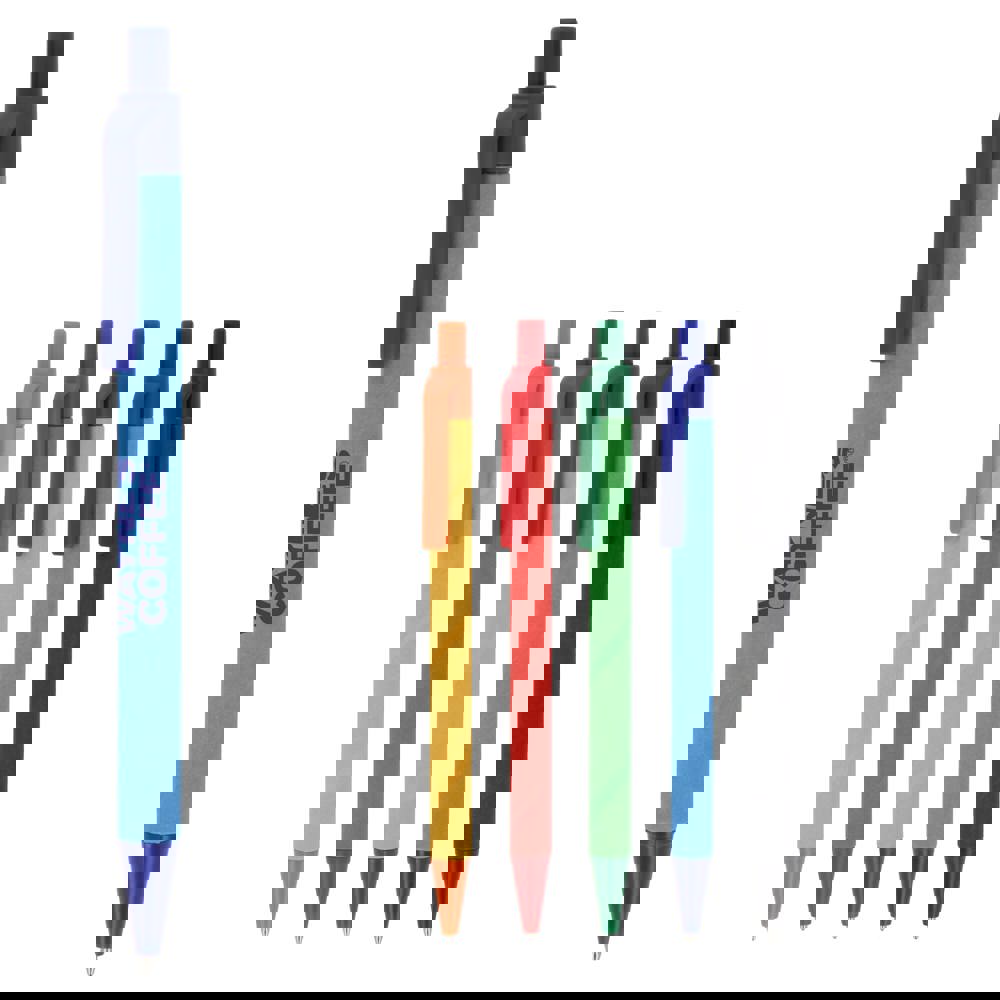 Onze zakelijke paperpen, gemaakt van gerecycled kunststof en voorzien van een efficiënte blauwe schrijfkleur, belichaamt eenvoud en duurzaamheid. Een verantwoorde keuze voor een doelgerichte schrijfervaring.