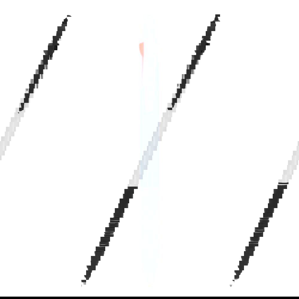 Driekleurige balpen met stylus en ergonomische grip. De schrijfkleuren zijn zwart, blauw en rood.