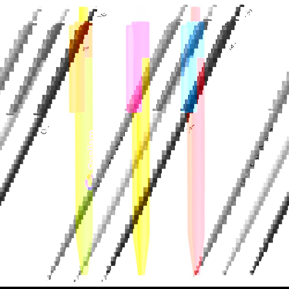 Toppoint design balpen, geproduceerd in Duitsland. Met X20 vulling voor 2,5km schrijfplezier. Keuze uit hardcolour en transparante onderdelen. Schrijfkleur naar keuze: blauw of zwart.