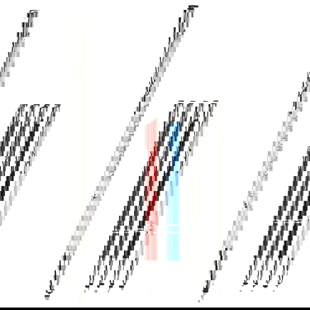 Elegante aluminium balpen met stylusfunctie. Met twee ringen in het lichaam van de pen als opmerkelijk detail. De pen bevat een blauwschrijvende Jumbo vulling.
