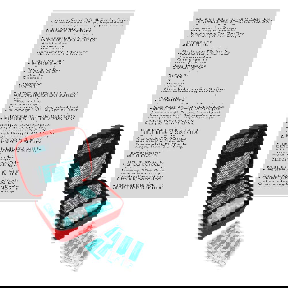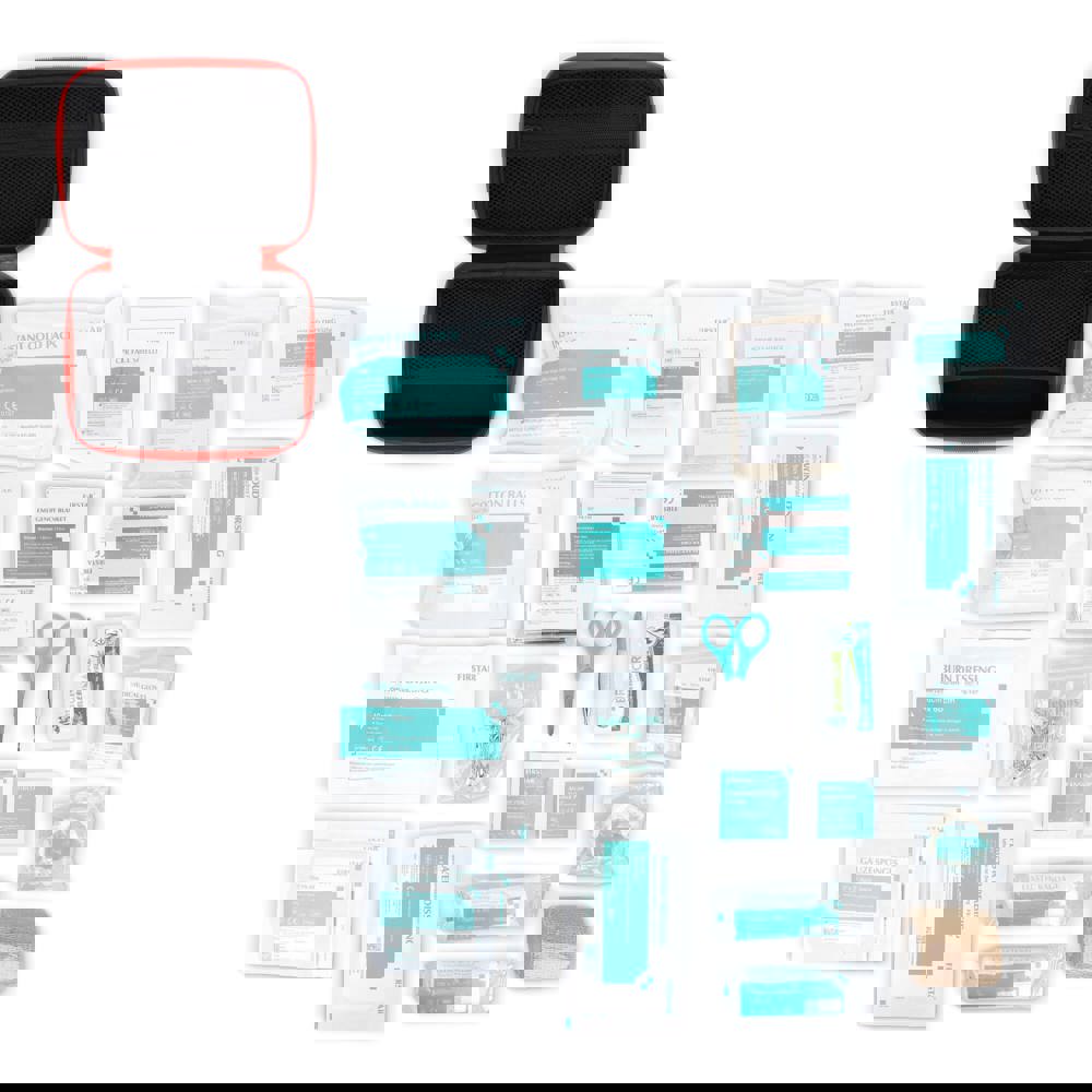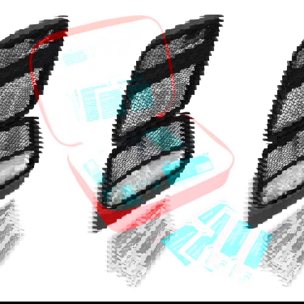 Deze uitgebreide EHBO set zit in een duurzame EVA-etui en voldoet aan Europese normen. Ideaal voor werkplekken, outdoor-activiteiten, reizen of algemene noodgevallen. Bevat een breed scala aan materialen voor wondzorg, brandwonden en andere incidenten. Inhoud: 2 × non-woven sponzen 2"" × 2"" 4-laags (5 stuks/pack), 2 × burn dressings 40 × 60 cm, 2 × non-adherente pads 5 × 7.5 cm, 4 × alcoholpads, 5 × pleisters 72 × 19 mm, 4 × reinigingsdoekjes, 2 × burn gel sachets, 1 × schaar, 1 × pincet, 2 × adhesive island dressings 6 × 10 cm, 1 × CPR face shield, 2 × gauze sponges 2"" × 2"" 8-laags (2 stuks/pack), 2 × gauze sponges 3"" × 3"" 12-laags (2 stuks/pack), 1 pack × 10 veiligheidsspelden, 1 × driekantverband 90 × 90 × 127 cm, 2 × elastisch verband 7.5 × 450 cm, 1 × nooddeken 130 × 210 cm, 1 × medische handschoenen (2 stuks), 1 × instant cold pack 100 g, 1 × medische tape 1.25 × 9 m, 1 pack × 10 wattenbollen, 1 × cohesief verband 5 × 450 cm.