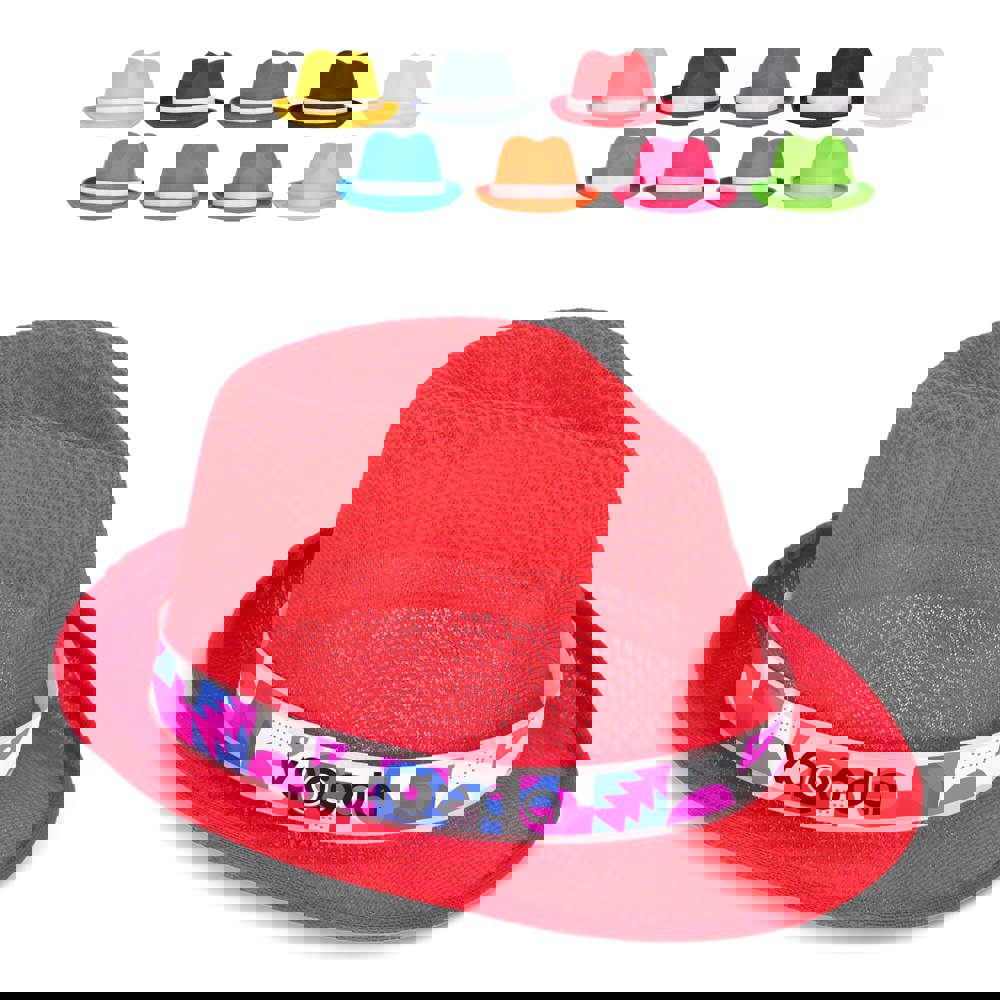 Een veelzijdige polyester hoed in verschillende promotionele en felle kleuren. Perfect voor zonnige dagen, biedt stijl en bescherming tegen de zon. De band maakt gepersonaliseerde ontwerpen mogelijk.