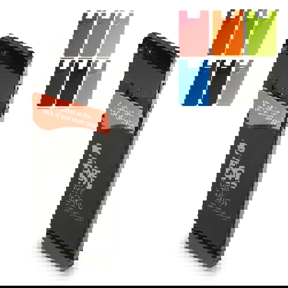 Siliconen kaarthouder die bevestigd kan worden aan de achterkant van de telefoon. Eenvoudig te bevestigen middels een 300LSE sticker. Deze kaarthouder biedt een grote bedrukkingsruimte.