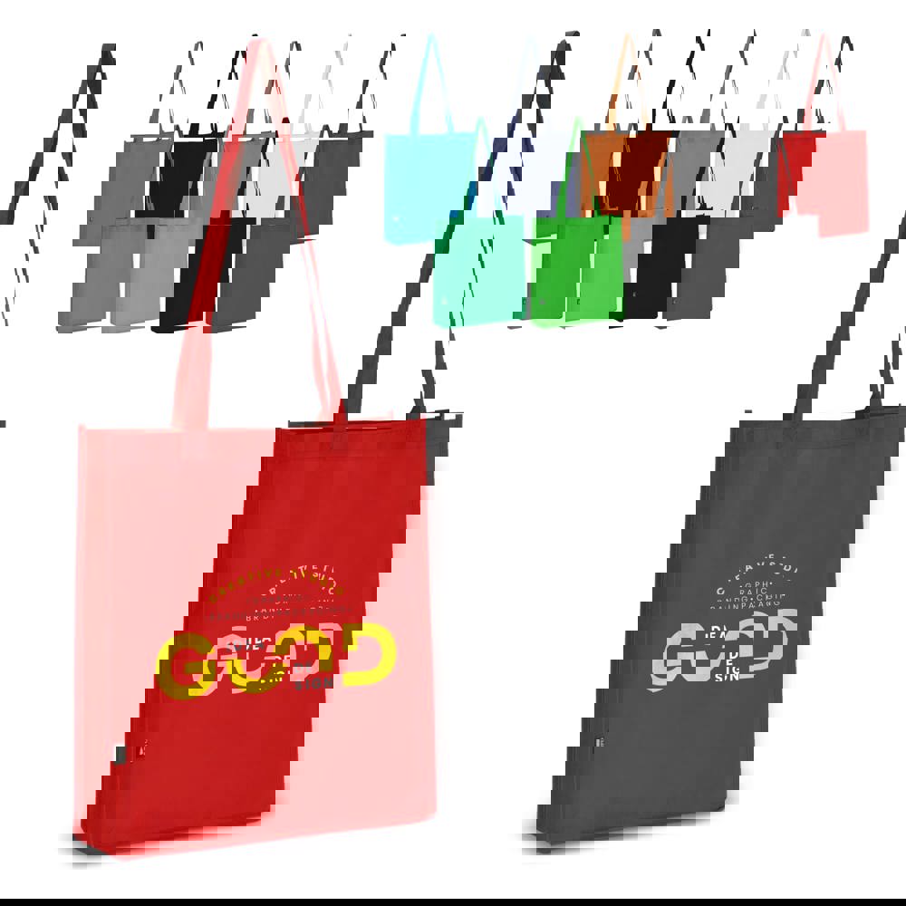 Draagtas gemaakt van 100% gerecycled non-woven materiaal. Voorzien van stevige gestikte handvatten en een ruime binnenkant, ideaal voor dagelijks gebruik. Een duurzame en economische keuze.