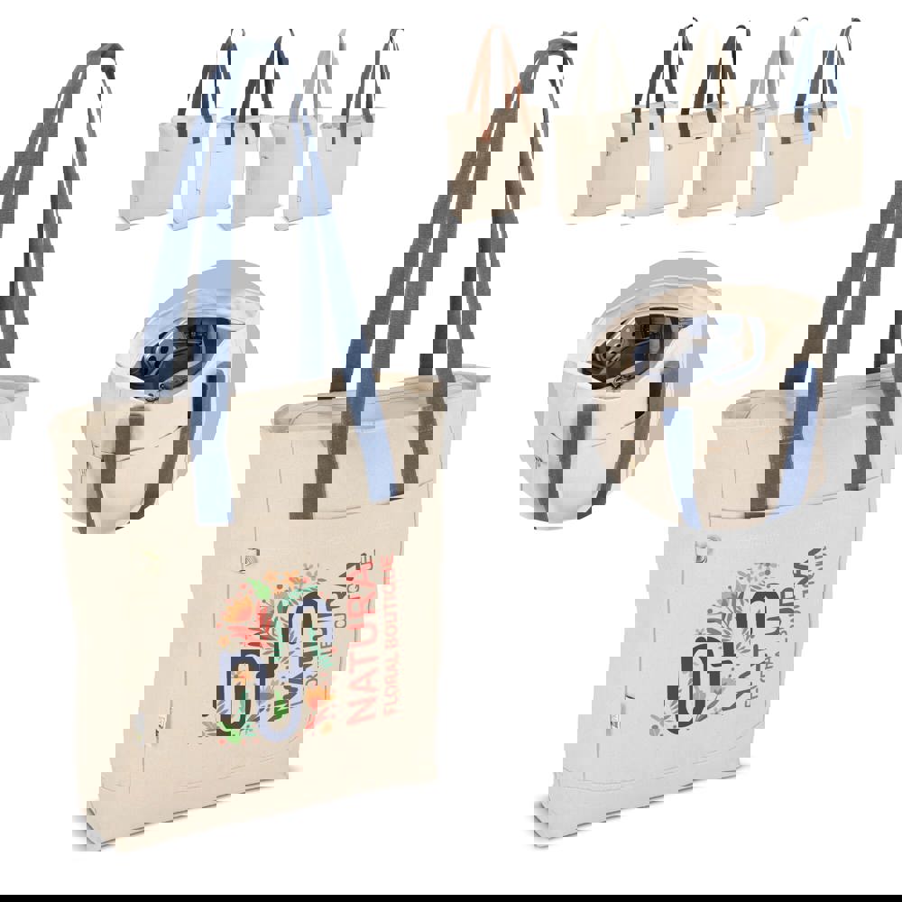 Jute shopper Popular.Voorzien van luxe gewatteerde katoenen hengsels. Duurzame ruime boodschappentas.