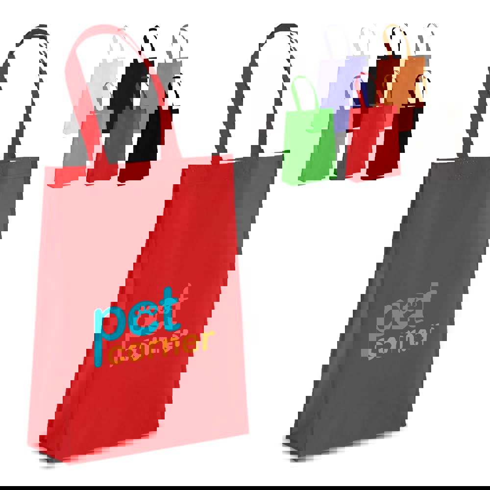 Draagtas gemaakt van 70% gerecycled gelamineerd non-woven materiaal. Voorzien van stevige gestikte handvatten en een ruime binnenkant, ideaal voor dagelijks gebruik. Het duurzame alternatief voor gelamineerde non-woven tassen.