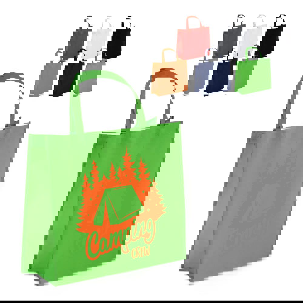Draagtas gemaakt van 70% gerecycled gelamineerd non-woven materiaal. Heeft stevige gestikte handvatten en een ruime binnenkant, perfect voor dagelijks gebruik. Het duurzame alternatief voor gelamineerde non-woven tassen